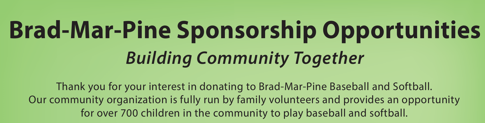 Sponsorship PackagesBrad-Mar-Pine is a non-pro t 501(c)(3) organization. Charitable contributions are tax deductible. Questions on Sponsorships? Email [email protected]